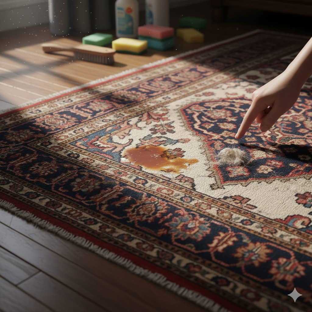 پیش از سپردن فرش به قالیشویی، باید نگاهی دقیقتر به سطح آن بیندازید و لکهها یا نقاط آسیبدیده را مشخص کنید. هر لکهای با منشأ خاص خود (چربی، رنگ، نوشیدنی، ادرار حیوانات خانگی و غیره) نیازمند روش پاکسازی متفاوتی است و اطلاع دادن نوع لکه به قالیشویی، میتواند در انتخاب شیوه شستوشوی مناسب و مؤثر نقش مهمی داشته باشد.